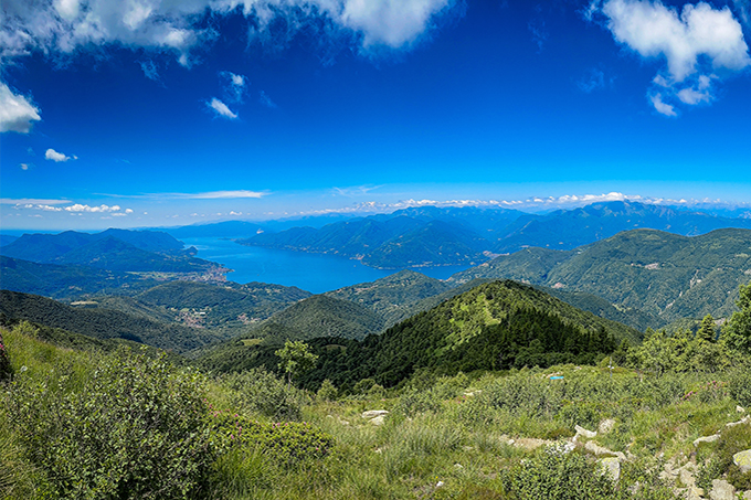 Partendo dal Rifugio Campiglio a Dumenza, in località Alpe Pradecolo, un sentiero sospeso tra due laghi, il Ceresio e il Maggiore e due Nazioni, l’Italia e la Svizzera, conduce in cima a