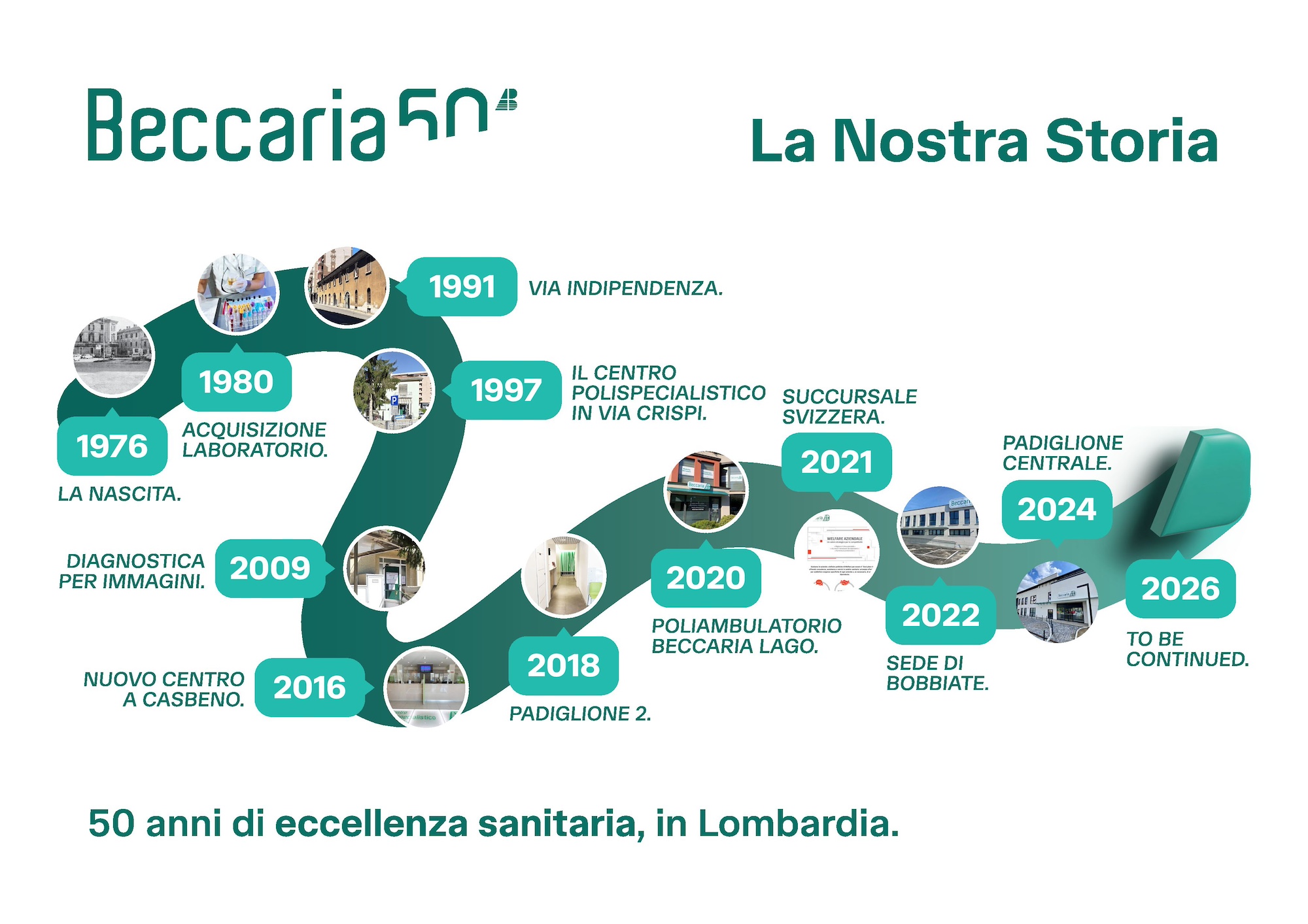 “Cinquant’anni sono un compleanno speciale. Il racconto di una storia partita da lontano, senza proclami o grandi sogni. Semplicemente una storia di immaginazione, di tanto lavoro e di un impegno costante, perché quando si parla di salute bisogna sempre essere presenti per cercare di dare una risposta in tempi rapidi. Per il futuro continueremo a investire in innovazione e prevenzione, rimanendo al passo con i cambiamenti e, quando possibile, anticipandoli. Vogliamo essere protagonisti di un cambiamento culturale nel modo di intendere la salute, promuovendo percorsi che aiutino le persone a vivere più a lungo e in salute, grazie alla tecnologia e alla ricerca”, ha dichiarato Claudio Pucci, Amministratore Delegato del Gruppo Beccaria.