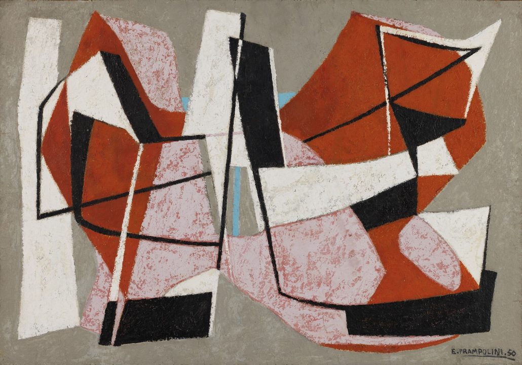 La terza e ultima sezione della mostra apre con le opere della fine degli anni ‘40 e dei primi anni ‘50 di Fontana, Melotti, Licini e Soldati che conducono verso nuove prospettive e nuovi linguaggi, dal Fronte Nuovo delle Arti al Movimento Arte Concreta, dallo Spazialismo agli artisti di Forma. “Ciò che rende unica questa esposizione – tiene a precisare Emma Zanella – è proprio la volontà di restituire, attraverso un’attenta selezione di opere provenienti da collezioni pubbliche e private, il complesso intreccio di influenze, corrispondenze e riflessioni critiche che hanno segnato il passaggio dall’astrattismo storico alla sua rielaborazione italiana. In questo senso, ‘Kandinsky e l’Italia’ non è solo un omaggio a uno dei padri dell’arte astratta, ma anche un’occasione di ricerca che illumina le connessioni profonde tra cultura italiana e internazionale, offrendo al pubblico un percorso di lettura che intreccia linguaggi, epoche e prospettive”.